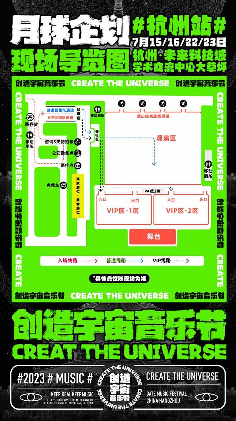 严厉禁止一切形式的场外夜排代排行为,希望所有乐迷,保证自身健康和休息时间,注意防暑防晒,也为了保证正常购票观众的公平观演权益,维护园区公共区域的正常秩序,杭州未来科技城学术交流中心大草坪入口处全区域禁止夜排代排等一切非常规入场时间的排队行为,请有序排队进场。