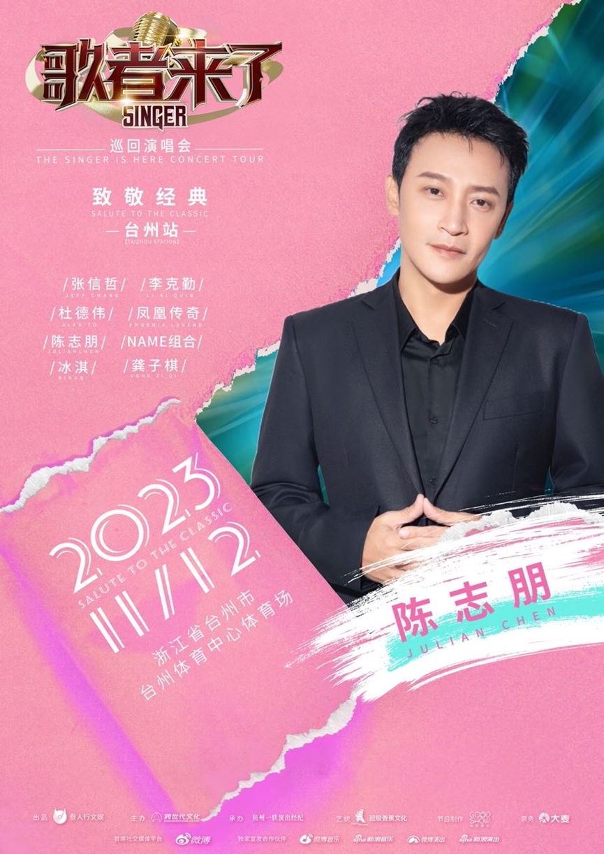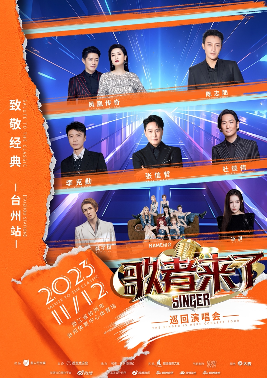 《歌者来了-致敬经典巡回演唱会 》台州站,将11月12日在台州体育中心体育场与我们共同缔造一个充满回忆和感动的夜晚,让我们“致敬经典”!