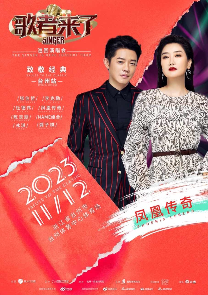 作为歌者来了巡回演唱会-致敬经典 台州站的首个特邀艺人,凤凰传奇将用他们激情四溢的舞台表演及凤凰传奇的经典歌曲陪台州的朋友们共度美好的经典之夜。本场演出曲目数为4首。(具体以实际演出为准)