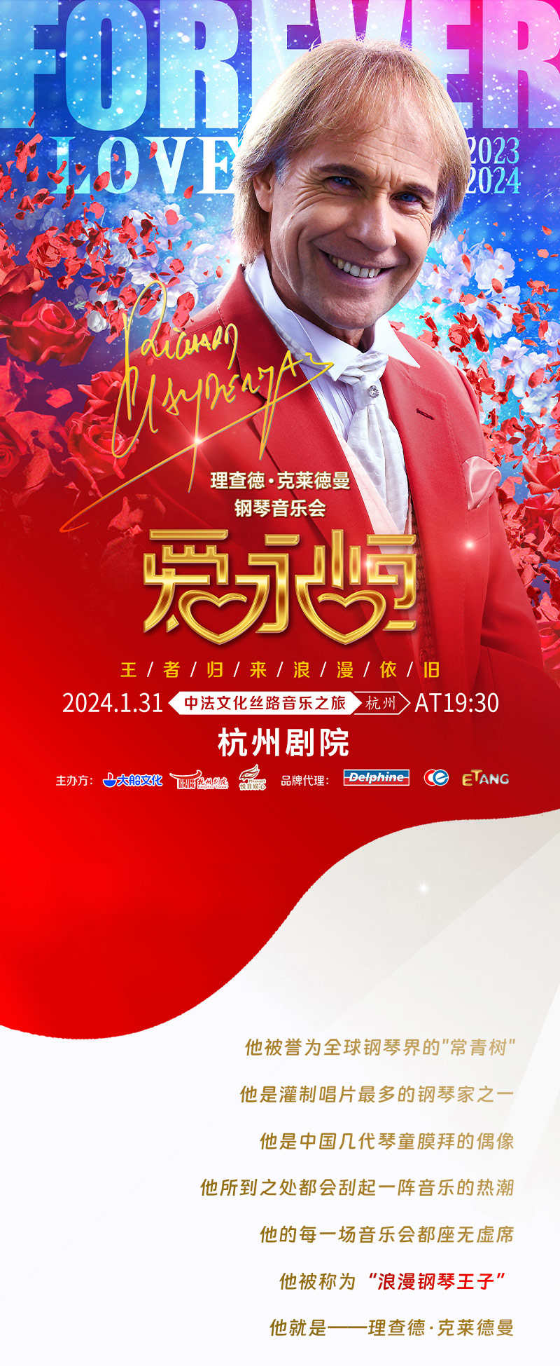 《爱永恒》理查德·克莱德曼2024新年钢琴音乐会·杭州站