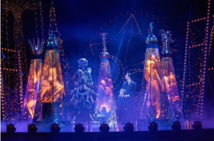 于是,这次复排版将启用大型轮船装置场景,华丽呈现一座诡谲变幻的怪人乐园,巨大的旋转木马在一众怪人的歌舞中、在奇异的光影里浮动旋转,仿佛将人带回真正的柯尼岛的全盛时期(1876年,现实中的柯尼岛上曾搭建起第一座旋转木马),棱镜建构起如迷宫般的场景,投射着“魅影”世界的怪诞与迷人。